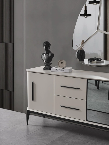 Takım içeriğinde 1 adet DESTAN Sandalye, 1 adet DESTAN Konsol (aynalı), 1 adet DESTAN Açılır Masa bulunmaktadır.