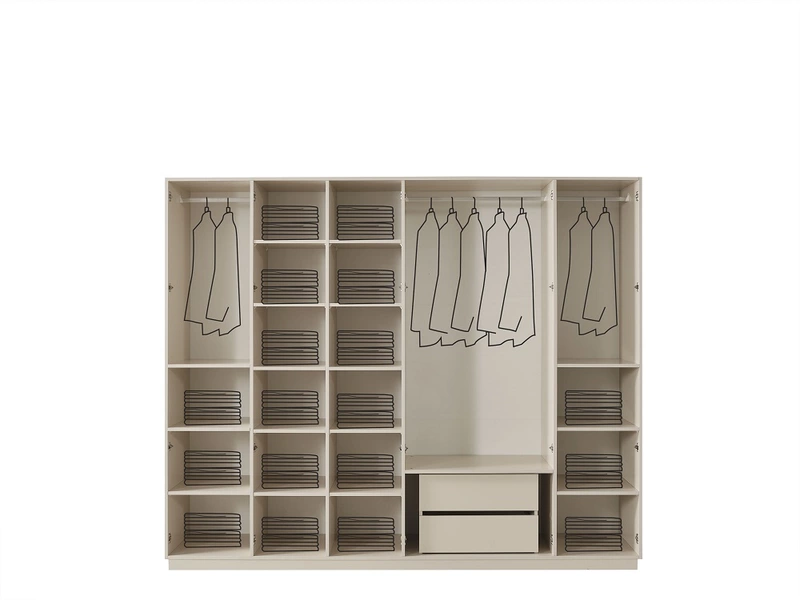 | Gardırop 1 adet Karyola Bazalı (160*200) 1 adet Şifonyer Aynalı 1 adet Komidin (sağ) 1 adet Komidin (sol) 1 adet | ||